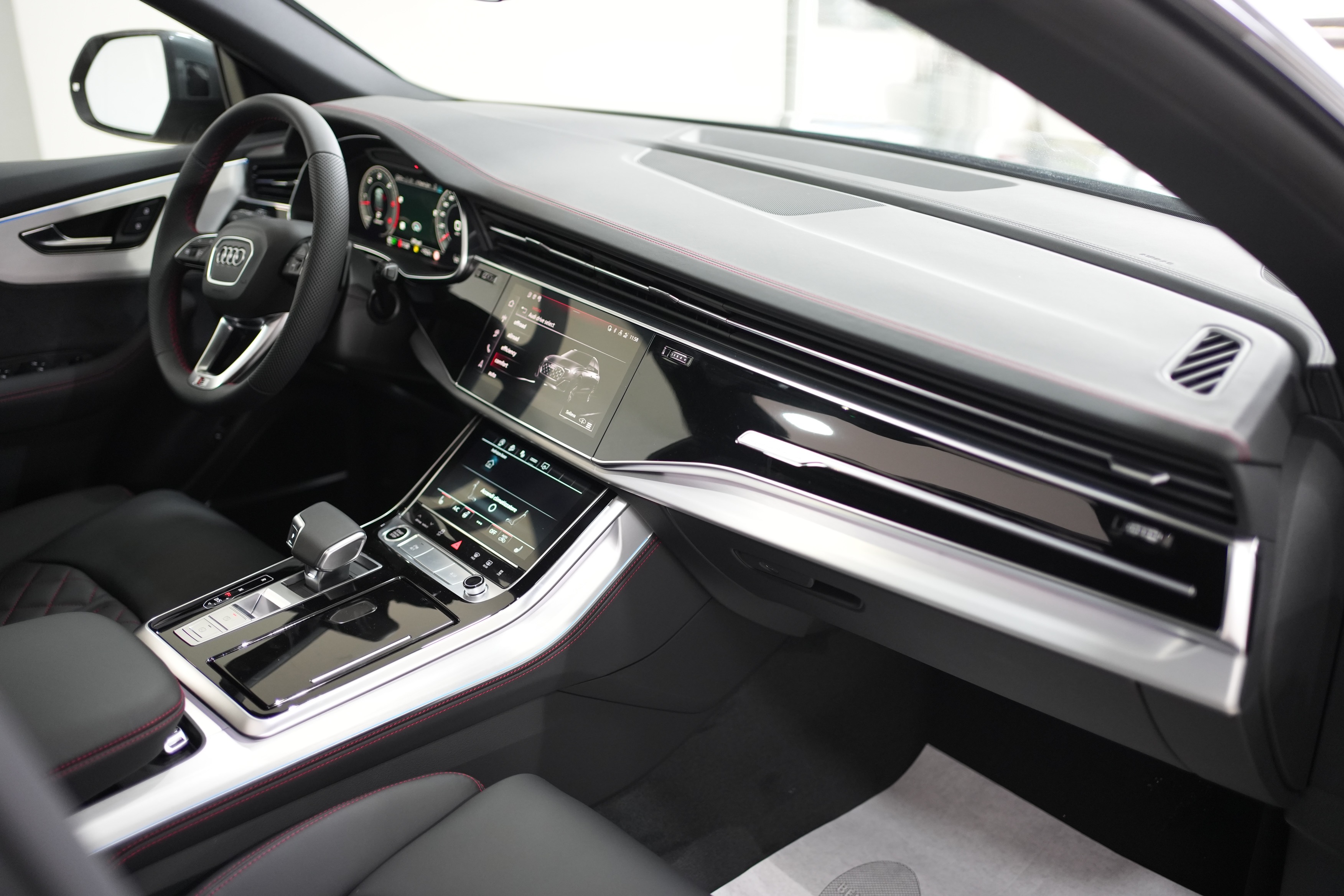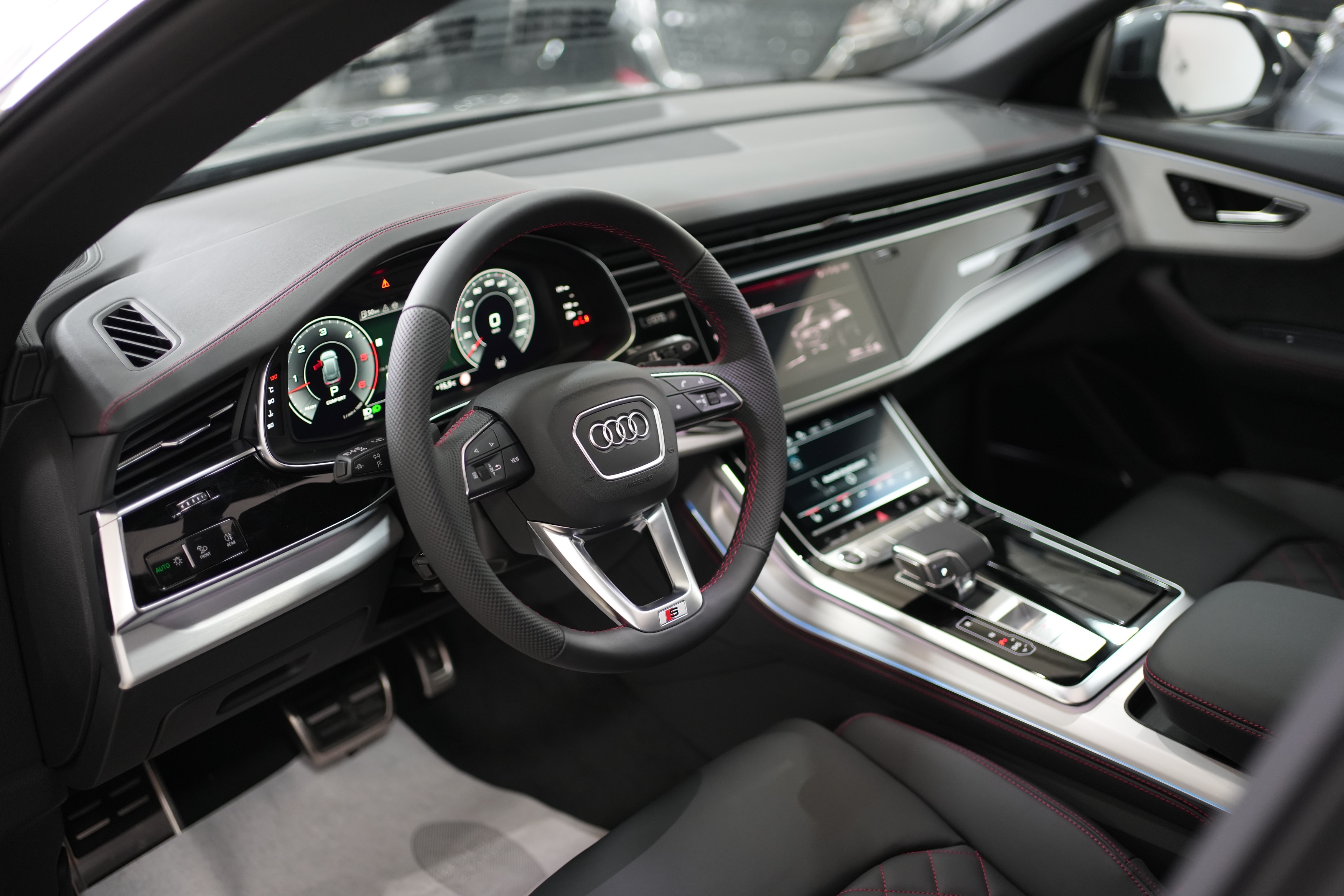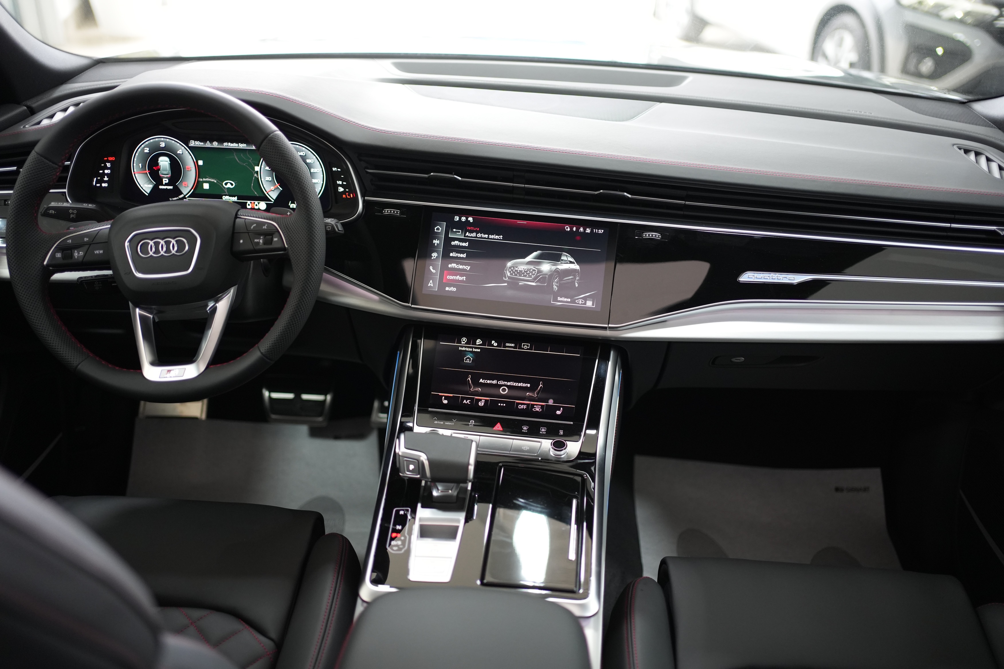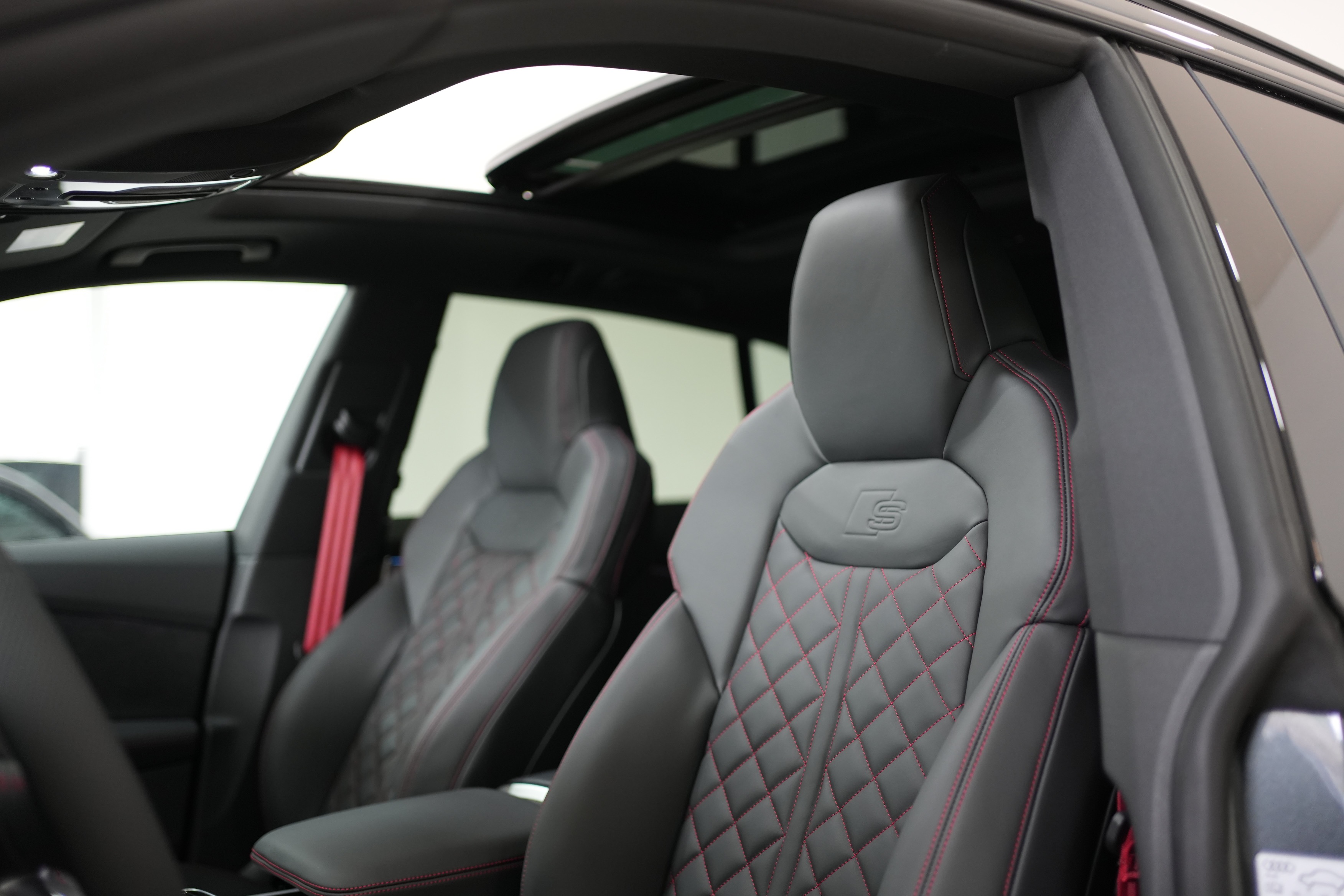 – Cuciture in contrasto Rosso Cremisi Audi Sport e cinture di sicurezza in Rosso
